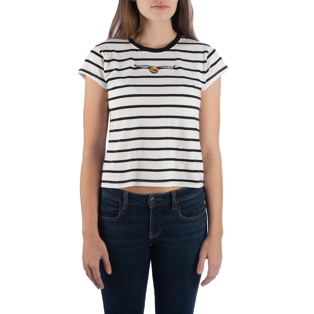 Juniors' Harry Potter Golden Snitch Cropped & Striped T-Shirt