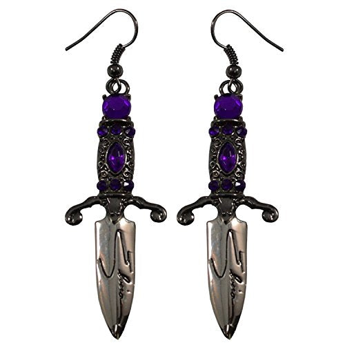 Elvira Dagger Earrings Purple Stones Halloween Horror Jewelry Kreepsville Gothic