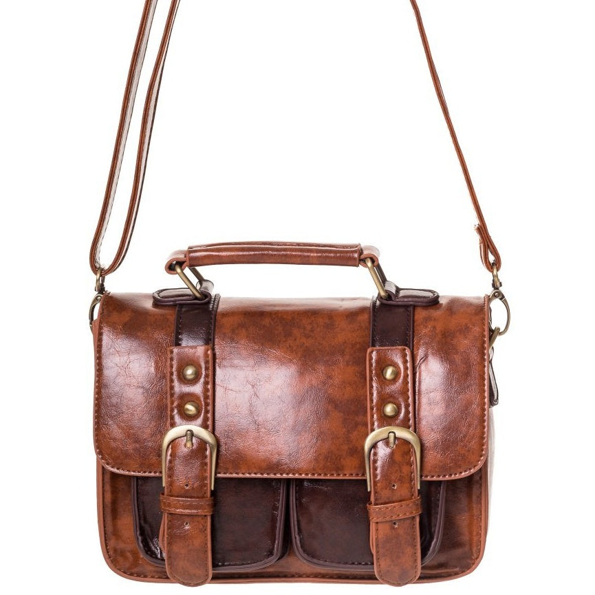 Leila Dark Academia Handbag - Dark Brown and Tan Steampunk Satchel Bag