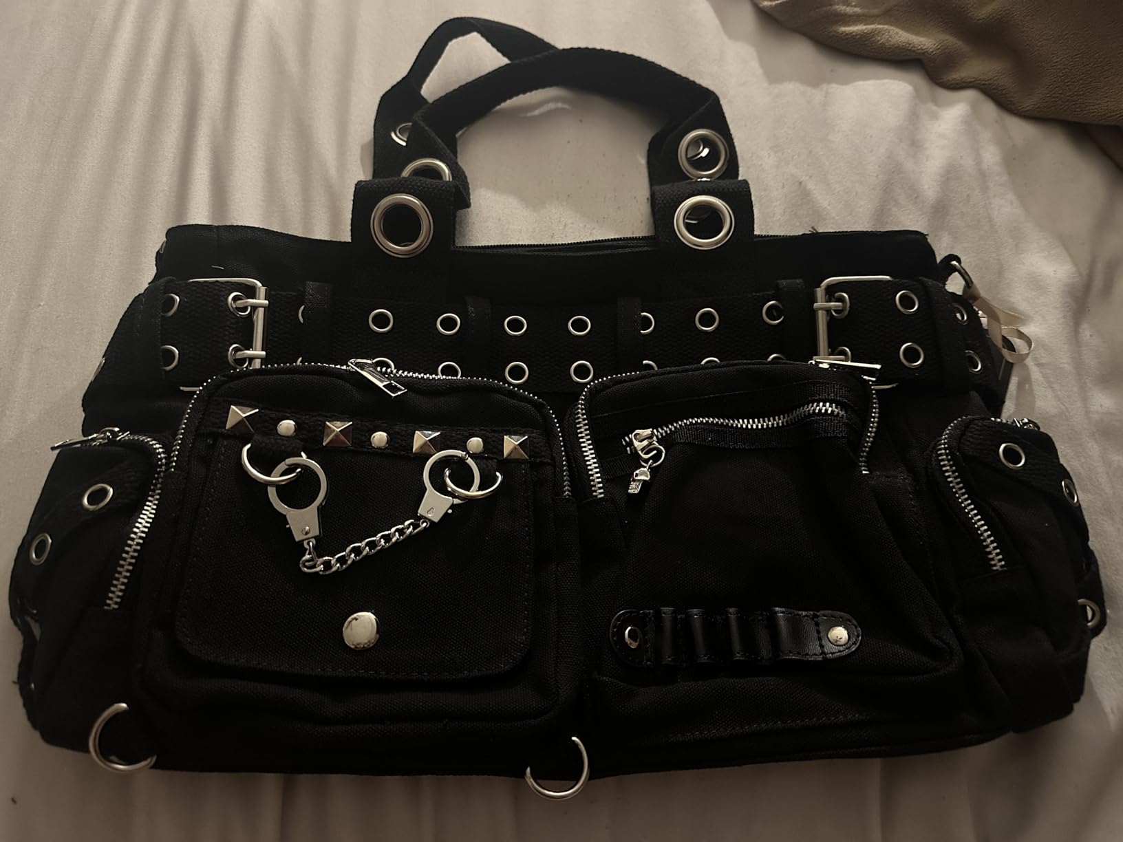 Elevate your alternative fashion game with the Lost Queen black handbag, a masterpiece of gothic and punk aesthetics. Adorned with metal handcuffs, pyramid studs, rivets, and an eye-catching skull charm, it is an embodiment of rebellion and style. Beyond its striking appearance, this bag offers a practical design with ample storage space for all your daily essentials.