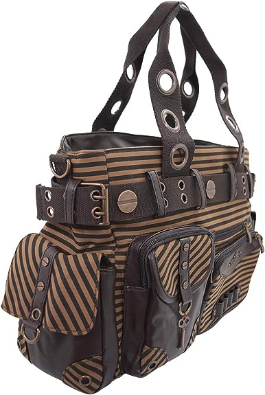 Lost Queen Vintage Steampunk Brown Striped Belted Key Charm Handbag