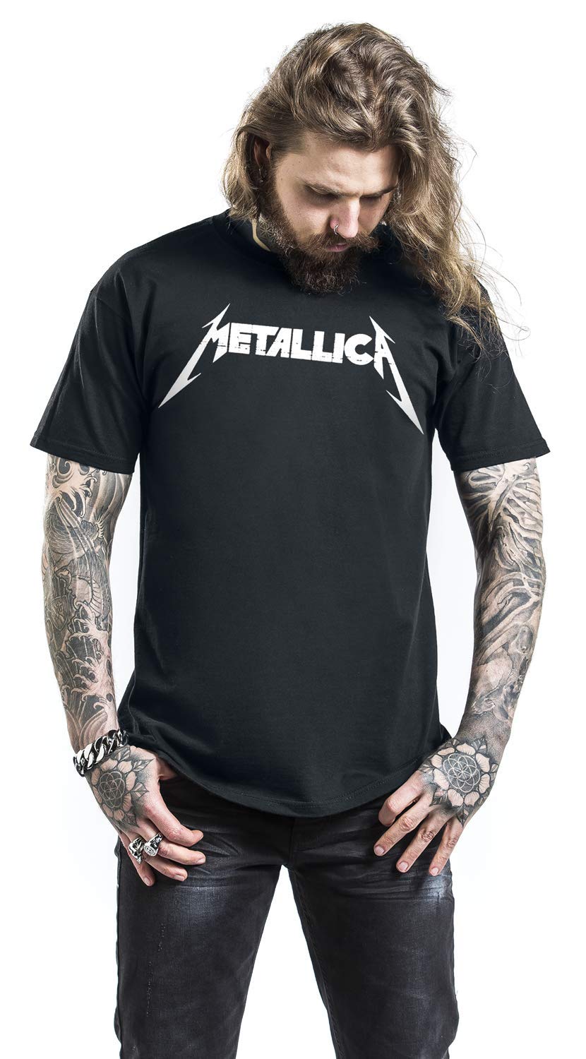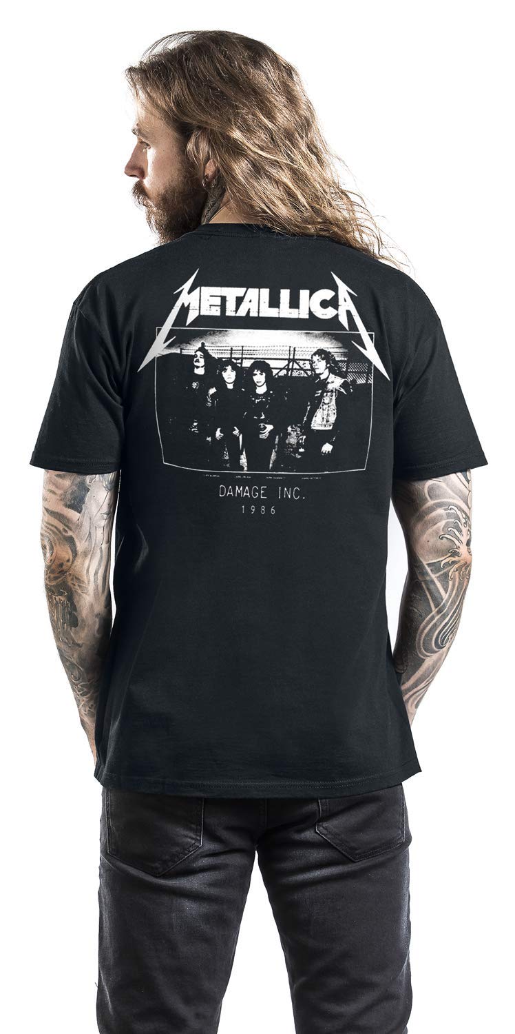 Officially licensed Metallica T-Shirt with double-sided printing. The front features the iconic Metallica text logo while the back shows a photo of the band from the Master of Puppets era. Great album. Great shirt. Machine washable, short sleeve 100% cotton.