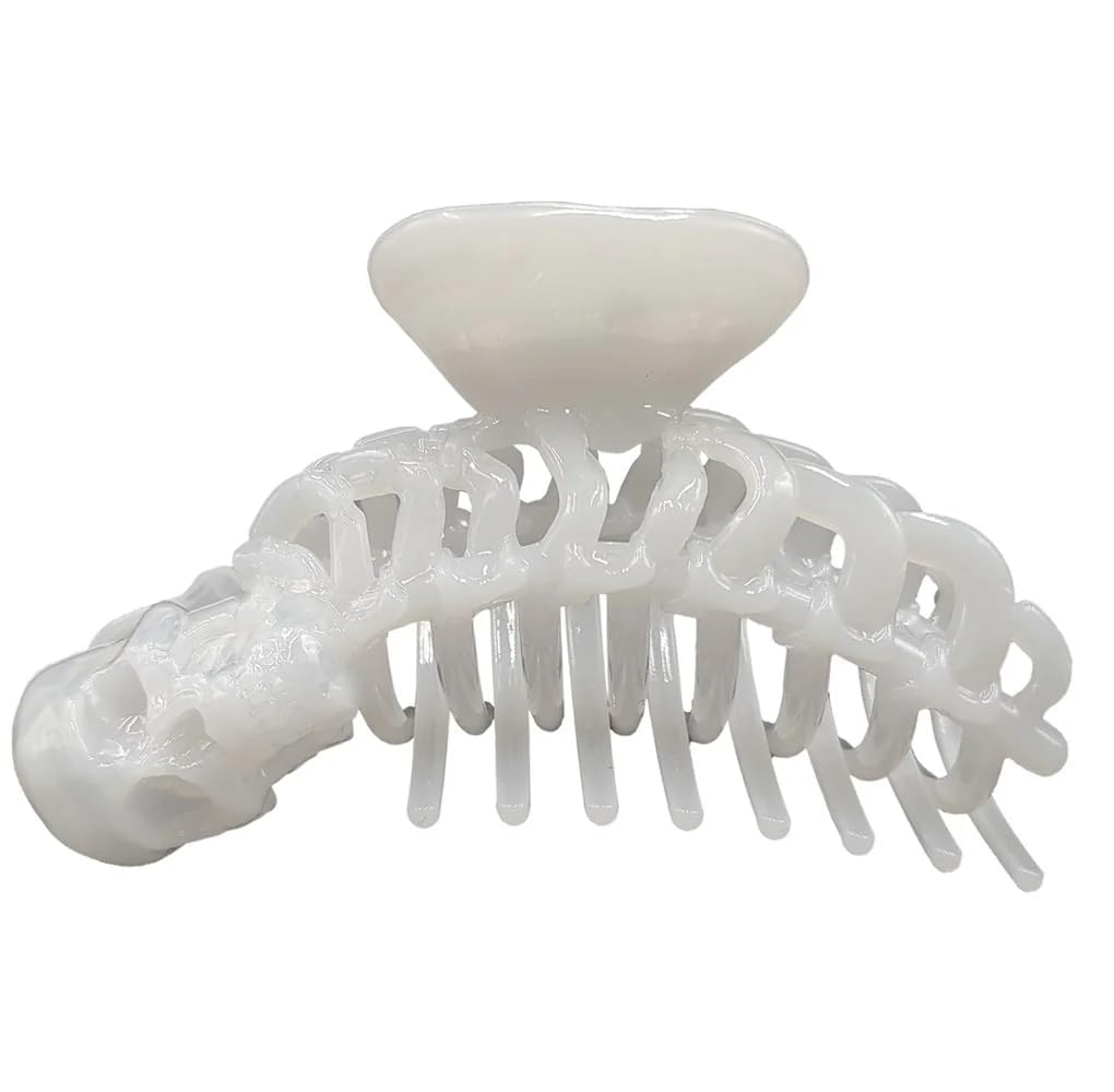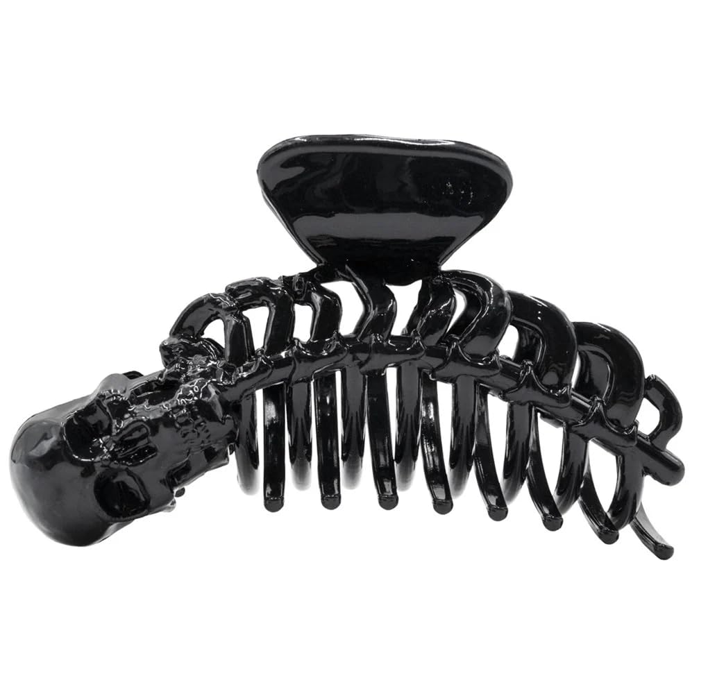 The Skeleton Ribcage Hair Claw Clip by Kreepsville is the perfect accessory for anyone who loves all things eerie and undead. This large clip is sure to grab attention with its anatomical skull and ribcage detail.