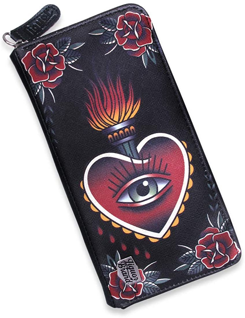 Liquorbrand Innervision Women's Zip Around Clutch Wallet Eye Heart Flower Rockabilly