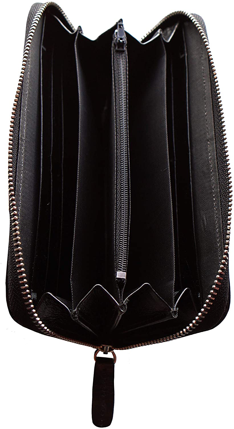 • Inside: 6 Card Slots, 1 Internal Zipper Pocket, 2 Full Length Paper Money Slots, 4 Open Compartments to Assist with Organization of Contents