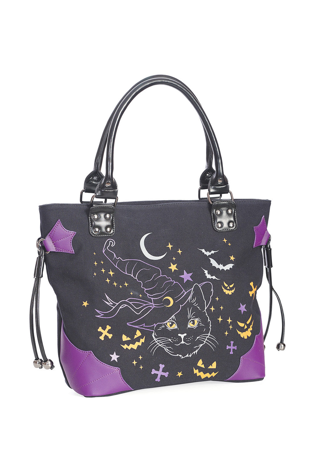 Lost Queen Women’s Halloween Handbag Black Cat Witch Spell On Me Shoulder Bag Purse