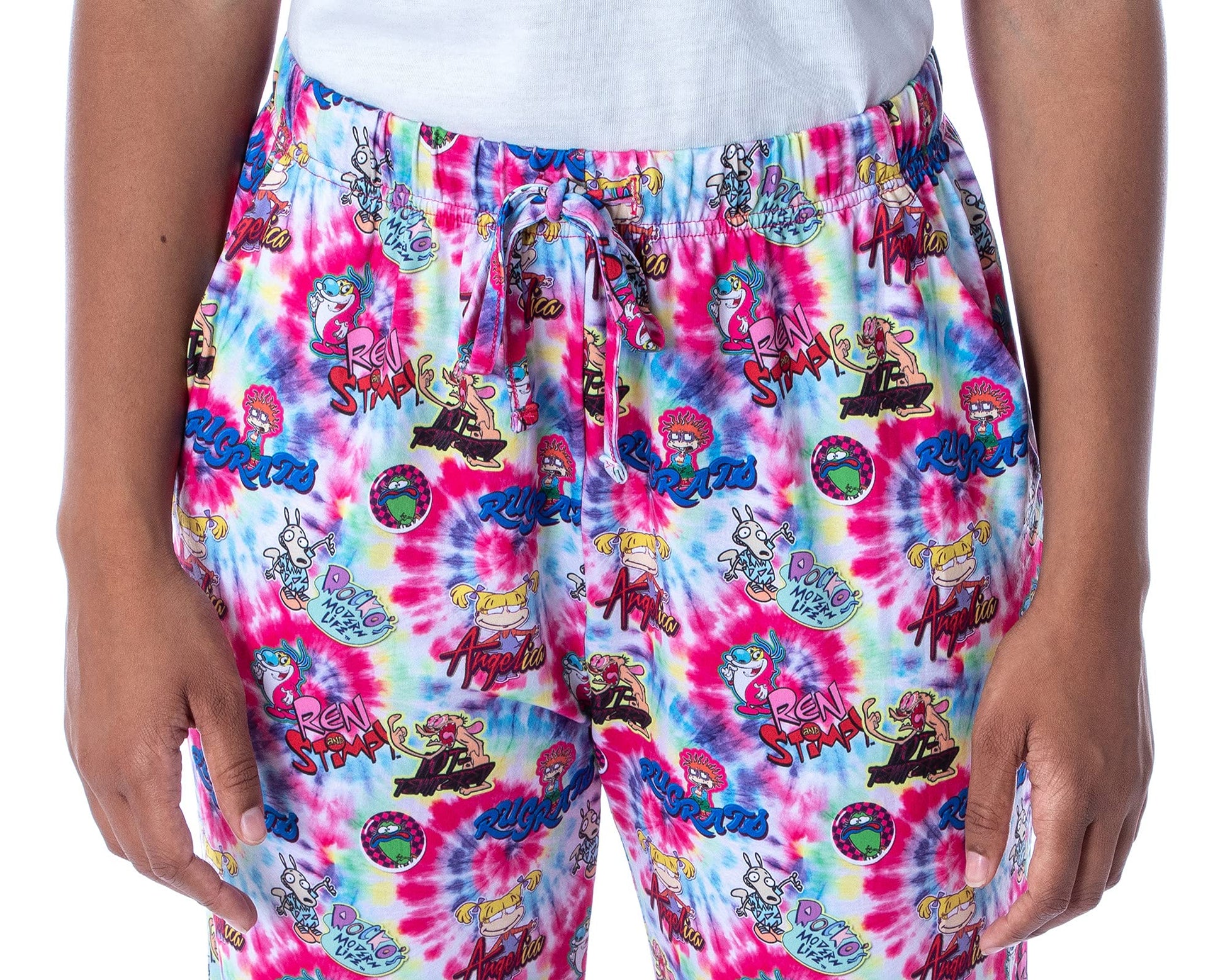 Nickelodeon Women's 90s Cartoons Rugrats Ren and Stimpy Rocko's Modern Life Spiral Tie Dye Pajama Pants